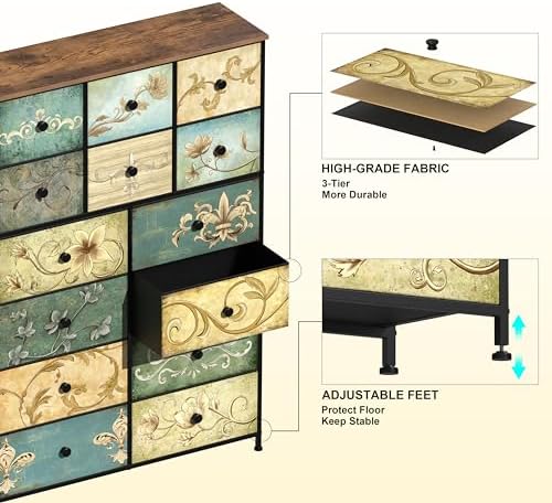 Transform your space with our Vintage Floral Pattern Fabric Dresser. Its eye-catching retro design adds a charming touch to any room’s decor. Be ready to impress your guests as this dresser becomes the focal point of your interior design.